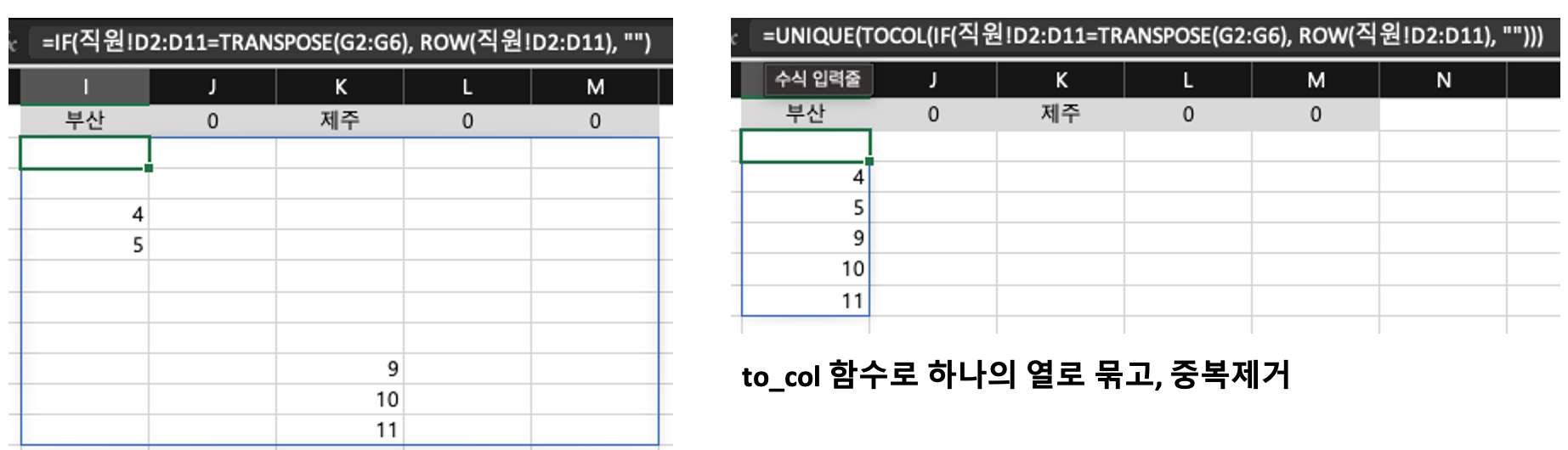 ROW 함수와 TO_COL 을 조합하여 행위치를 유도