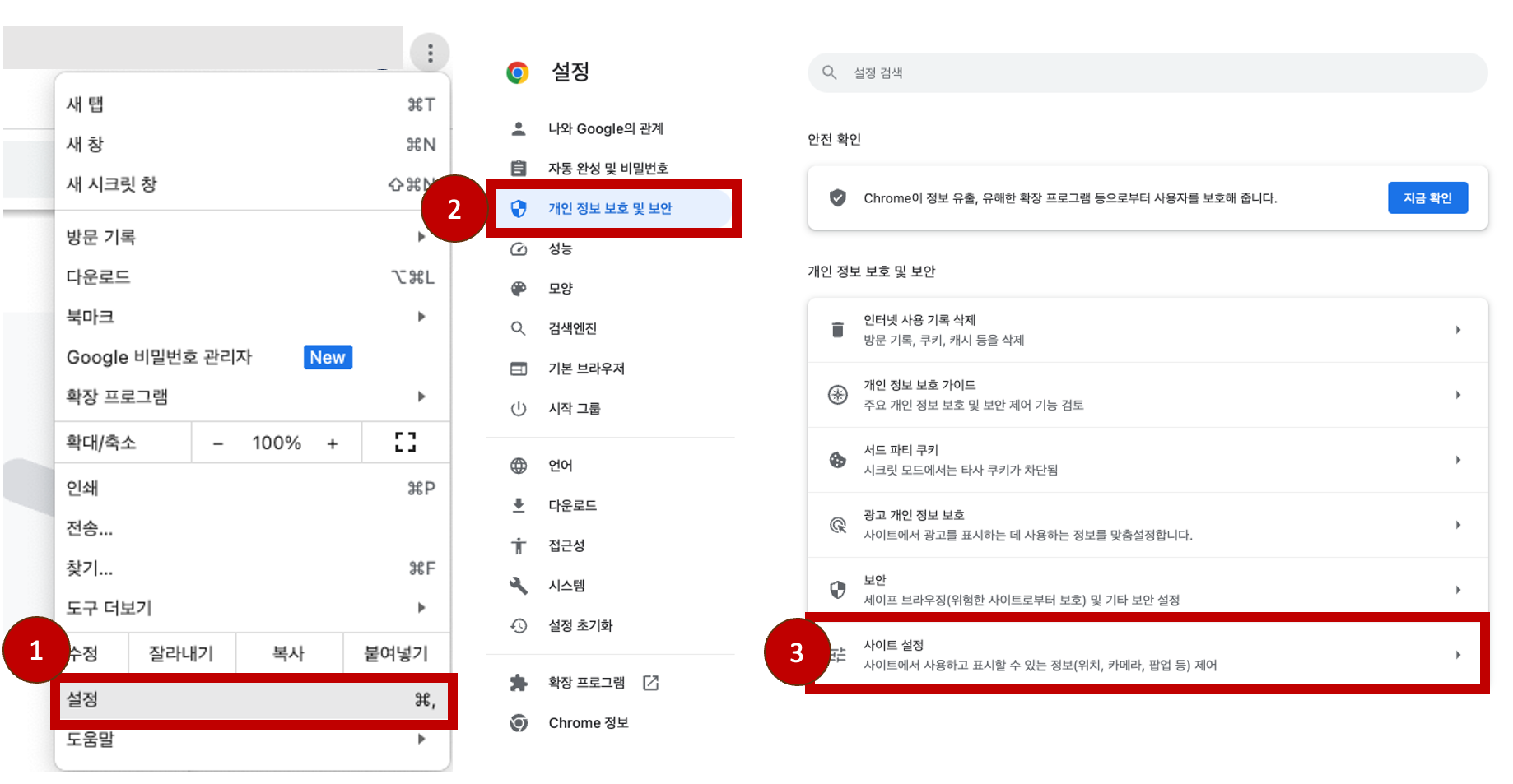 2. [개인 정보 보호 및 보안] 탭 글륵