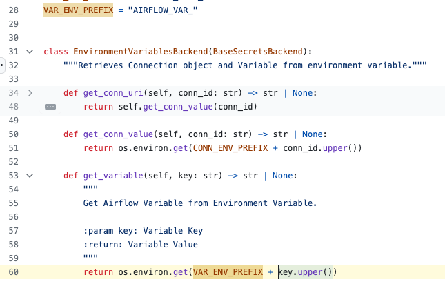 위와 같이 "AIRFLOW_VAR_키=값" 형태의 환경변수를 선언하고 이걸 Variable 에서 가져오는게 가능하다는말이다.